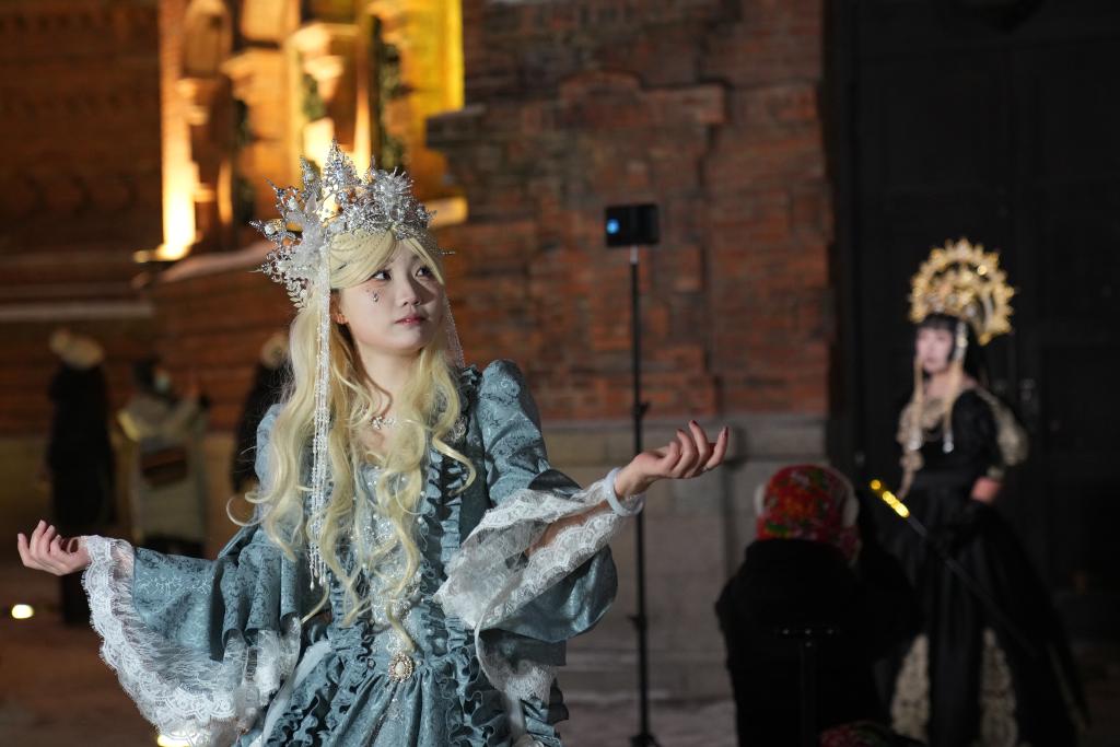 1月11日,游客在哈尔滨建筑艺术广场盛装拍摄写真。新华社记者 王建威 摄