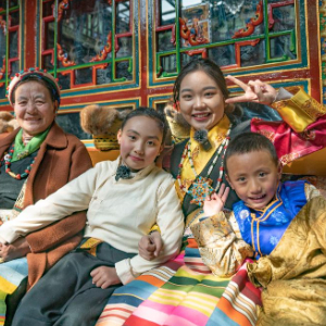 后来我们又去莫拉家拍摄了团圆饭、换新藏装等场景。拍摄时,我需要穿藏装和巴桑莫拉的女儿进行互动,而当天日喀则的气温已经到了零下,她发现我的双手冰凉后,全程都用自己的手捂着我的手,想让我暖和一点。拍摄结束以后,小朋友们也围在我身边抱着我,想用自己的方式给我传递一点温暖。