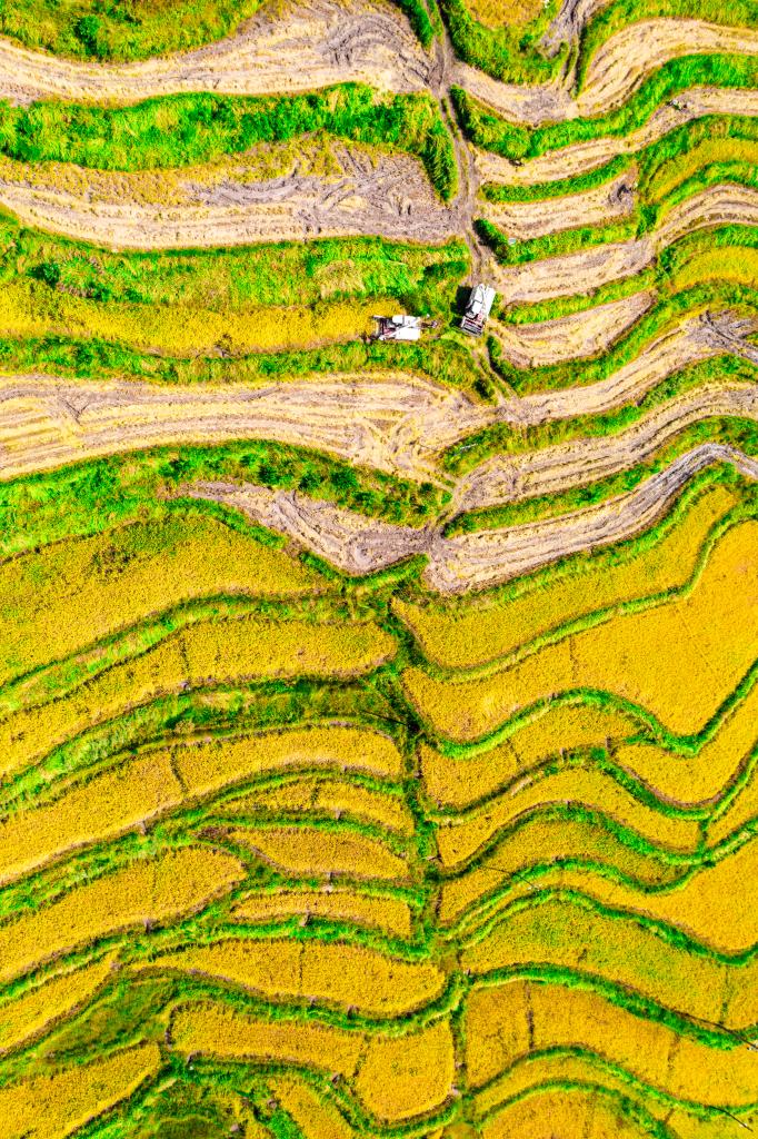 收割机在四川省巴中市通江县春在镇文笔村收割水稻(2023年9月15日摄)。新华社发(付海旭摄)