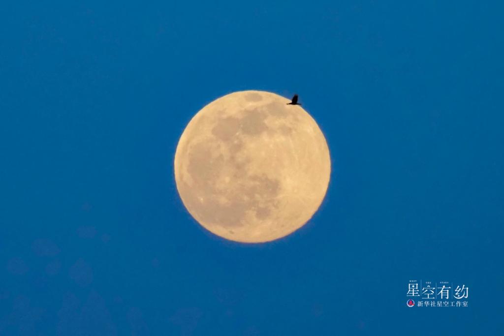 北京星空摄影爱好者王俊峰2021年1月28日在北京西城拍摄的飞鸟掠满月。(本人供图)