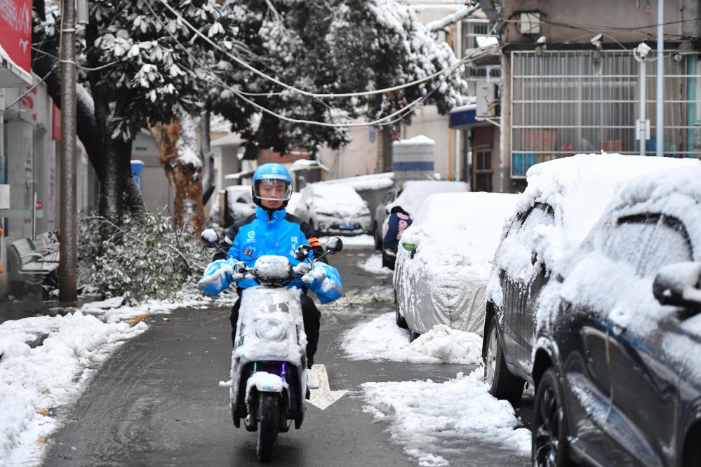 1月22日,长沙市天心区裕南街街道联合外卖骑手志愿者为独居老人免费送餐上门。新华社记者 陈泽国 摄