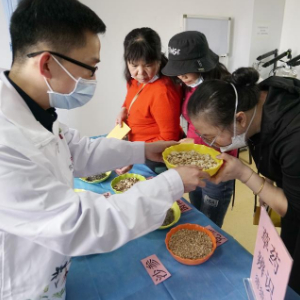 2023年12月8日,居民在北京市丰台区成寿寺街道社区卫生服务中心举办的“中医药文化科普活动”上参加闻香识中药活动。新华社记者李欣 摄