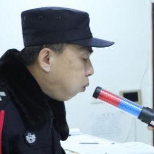 冯军在兰州铁路公安局兰州公安处乘警支队接受酒精检测。新华社记者李杰 摄