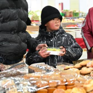 1月27日,在阿合奇县乡村农贸综合市场,当地居民购买糕点和水果。新华社记者 李响 摄pagebreakpagebreak