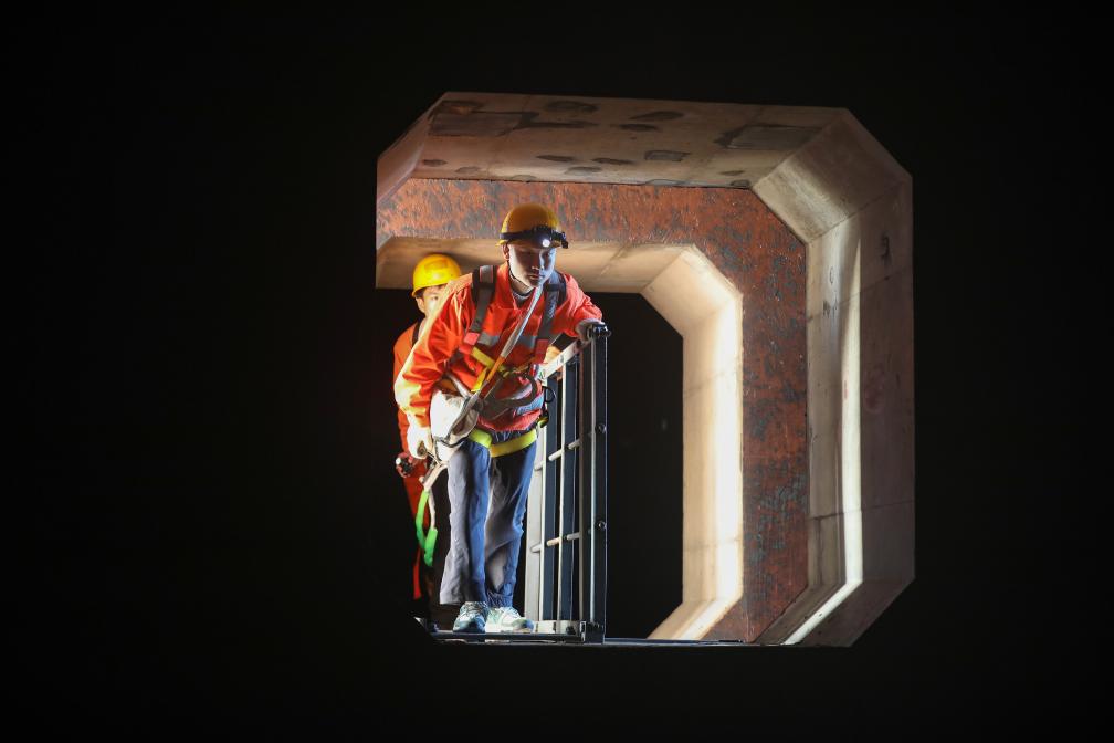 1月26日,福州工务段青年突击队进入平潭海峡公铁大桥箱梁检修。新华社记者 周义 摄