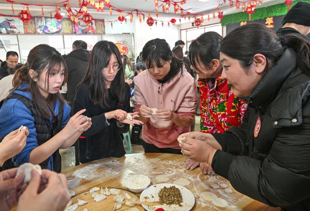 冬令营营员在吉林省舒兰市二合村学包饺子(1月26日摄)。新华社记者 陈晔华 摄