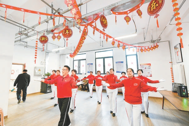 在雄安新区南文社区养老驿站,老年人练习舞蹈,迎接新年。记者 邓伟摄