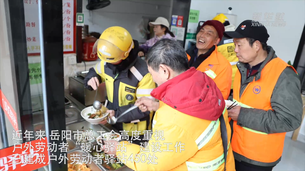在岳阳,19岁的海南人肖懿铭送完外卖订单后,能够在舒适的“暖心驿站”休息、用餐。