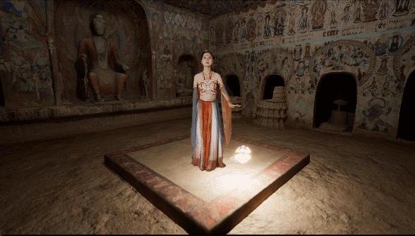 体验过后,游客还能在虚拟演播厅,实时拍摄一段真人与洞窟虚拟场景交互的视频。无论身处何处,打开手机便能重温这段“带得走”的敦煌记忆。