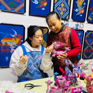 “我们的‘龙宝’结合了广西壮锦纹样,用壮锦面料做龙,同时用壮锦来编织一个龙珠。”谭湘光说,“非遗技艺”与“生肖龙”元素结合,既是为了向人们传递龙年祝福,也希望通过小小的文创产品传播壮锦文化。