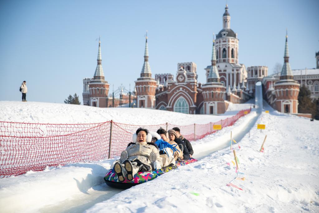 1月7日,游客在“冰城”哈尔滨市的著名旅游景点伏尔加庄园内游玩。新华社记者 张涛 摄