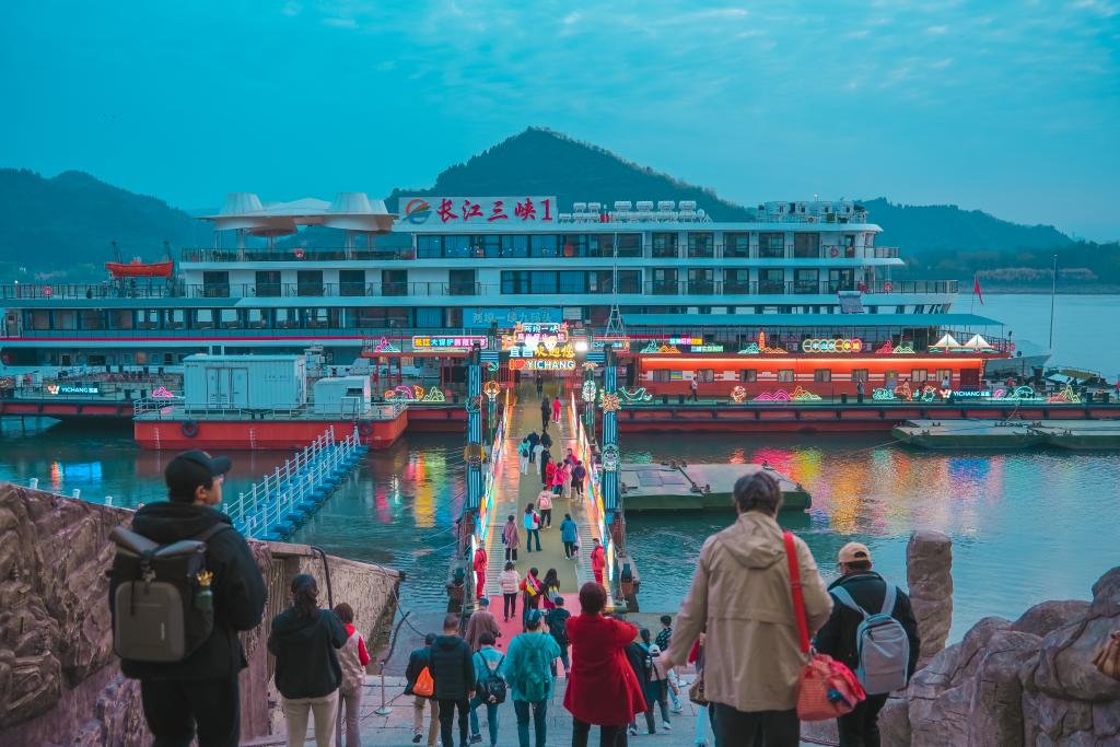 游客正走向“长江三峡1”号游轮。(汪紫璇 摄)