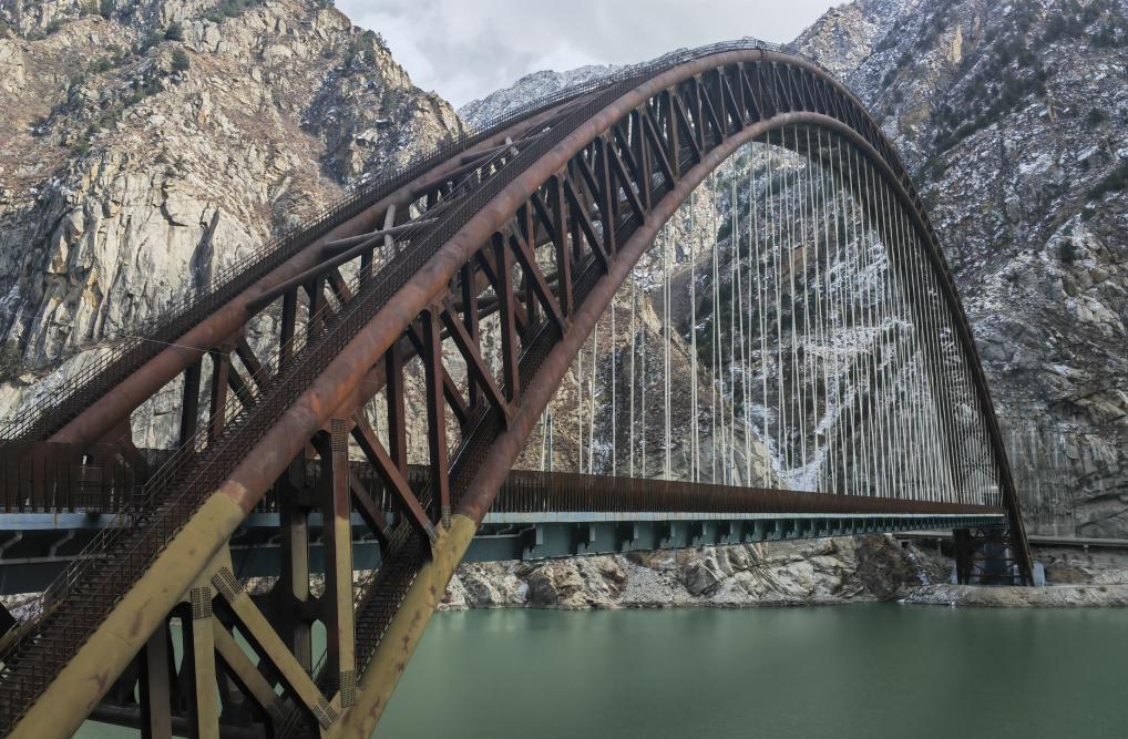 藏木特大桥是拉林铁路的重要控制性工程,横跨雅鲁藏布江,主拱跨径430米。枯水期的雅鲁藏布江水位下降,桥面与江面的垂直距离超过30米。桥隧工为了确保大桥安全通畅,要沿着桥拱的数百级狭窄阶梯,爬到距离江面超过百米的拱顶,仿佛攀行云端。