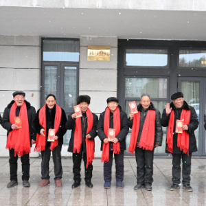8位“大包干”带头人展示刚刚领到的2023年度分红红包。新华社记者黄博涵 摄