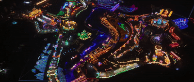 “花市灯如昼”,穿梭在上千个灯组之中,不仅能感受五千年历史的中华文明与浓浓年味,感叹于彩灯匠人的变废为宝、守正创新,还能看到传统彩灯与AI、AR等新科技,还有知名游戏和潮玩IP等新鲜时尚元素的联动。