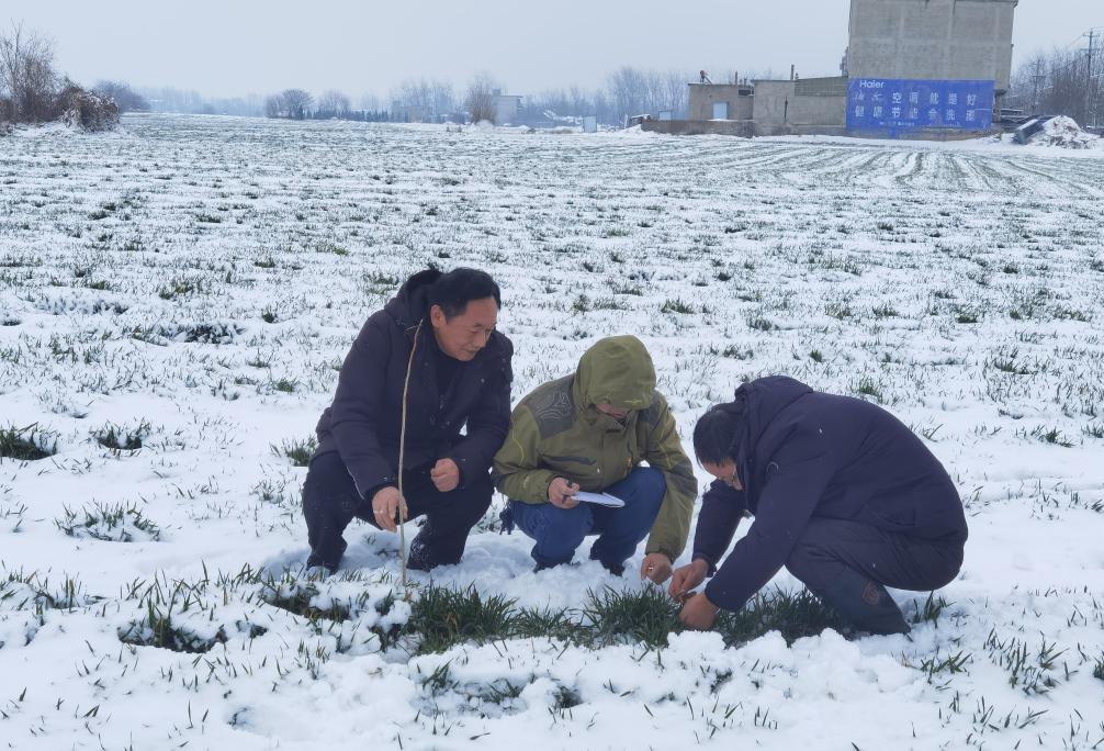 连日来,凤阳县乡两级220多名农技人员活跃在农业生产一线,蹲在田头、拨开覆雪,仔细查看小麦苗情,提供田管建议。凤阳县农技推广中心主任徐德明说,对于粮油生产来说,这场降雪降温有助于杀灭农田中的虫卵,减轻病虫害,有利于小麦越冬生长。