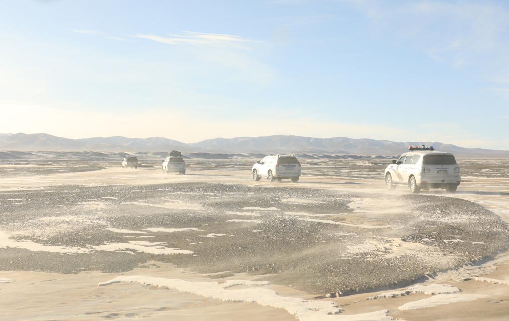 1月19日,在可可西里卓乃湖区域附近,可可西里森林公安局巡山车辆在巡查途中。新华社记者 李占轶 摄