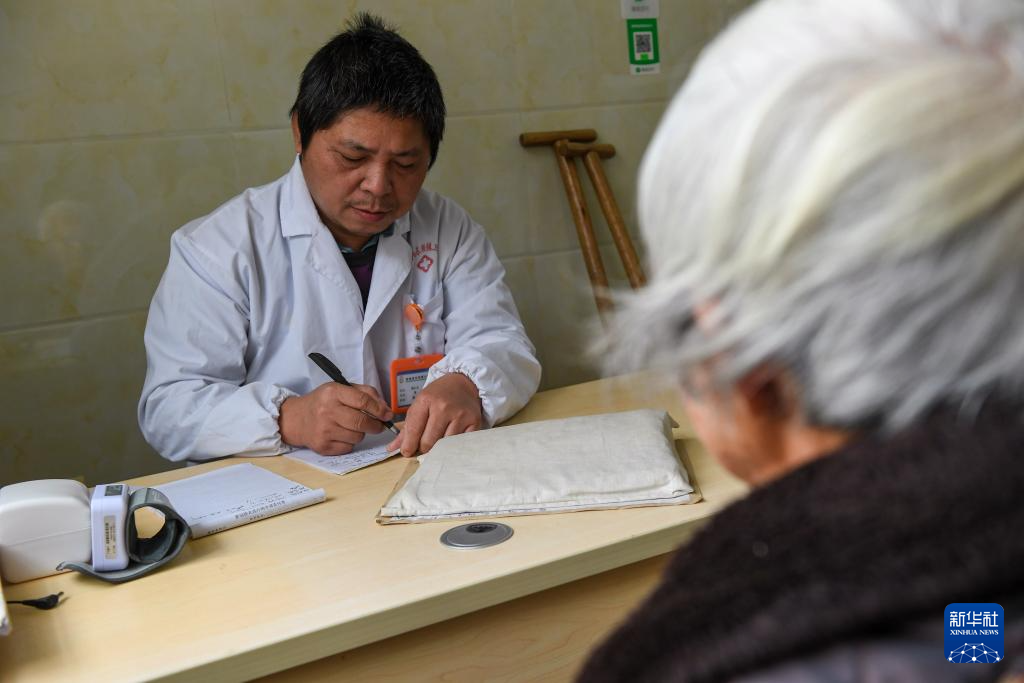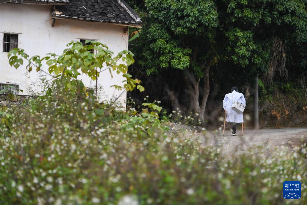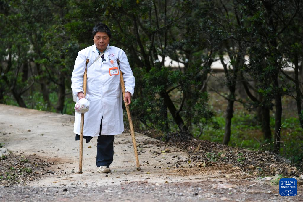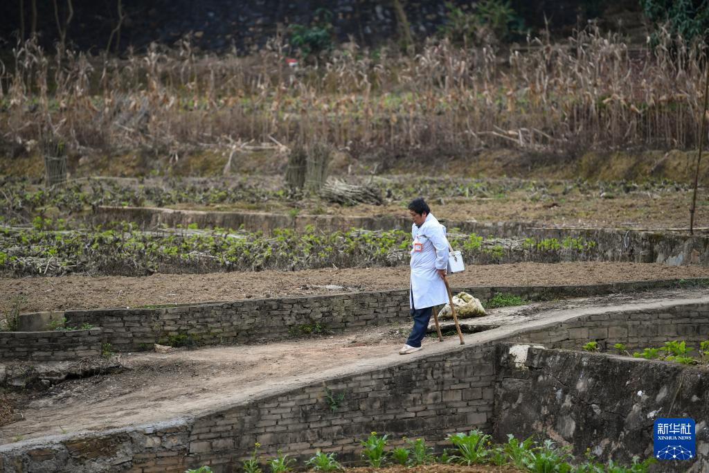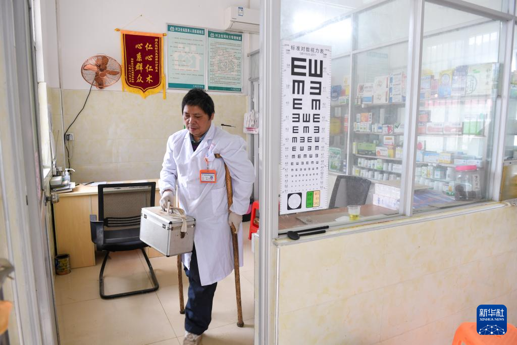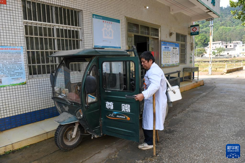 “出诊的时候,车开不进去的地方就拄着拐杖走进去,拐杖也是自己做的,路走得多,用两三年就得换新。”郑仁才说,以前村里都是泥路很容易摔跤,现在路修得更好了,出门看诊方便多了。郑仁才还经常参加上级卫生系统组织的培训,获取更新的医学知识,更好为村民提供服务。