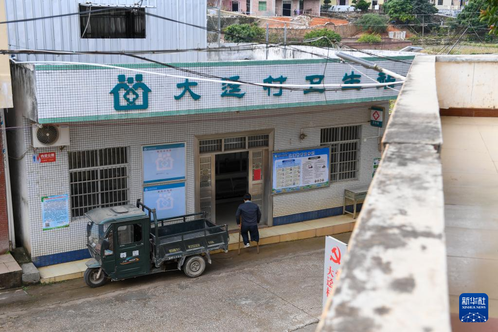 1月31日,在广东省云浮市郁南县东坝镇大迳村,郑仁才拄着拐杖走进村卫生站。