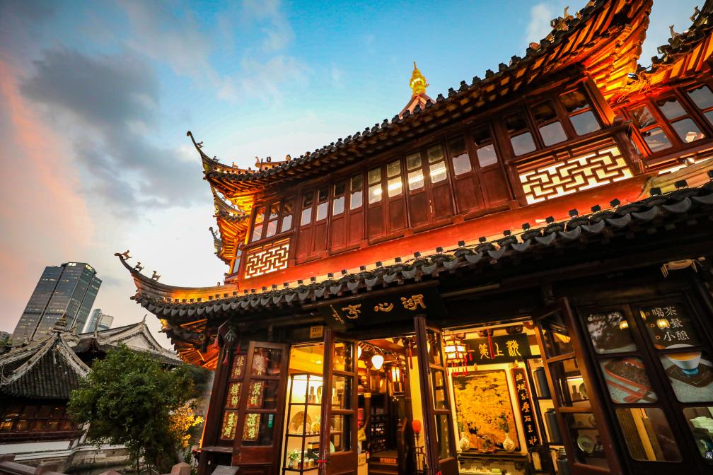 ↑这是2023年10月11日在上海豫园拍摄的湖心亭茶楼