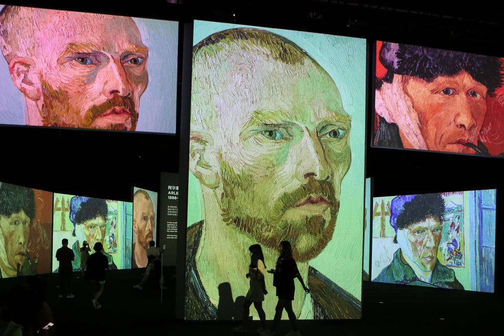 ↑2023年7月16日晚,参观者在上海世博会博物馆参观“梵高再现”光影展。