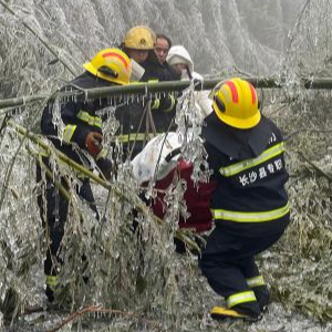 长沙县福临镇专职消防救援队副队长饶磊乐接到救援电话后,立即带领两名消防员,徒步向已经封冻的影珠山挺进。由于连日的低温雨雪冰冻天气影响,山路上尽是“冰溜子”与倒伏的树木。三名消防员凭借着惊人的毅力,一路劈砍前行,在即将行至山顶时,道路湿滑,饶磊乐与队员们趴在地面,利用身体增大摩擦力,手脚并用爬了上去。中午11时许,饶磊乐一行人终于来到了余女士家门口。