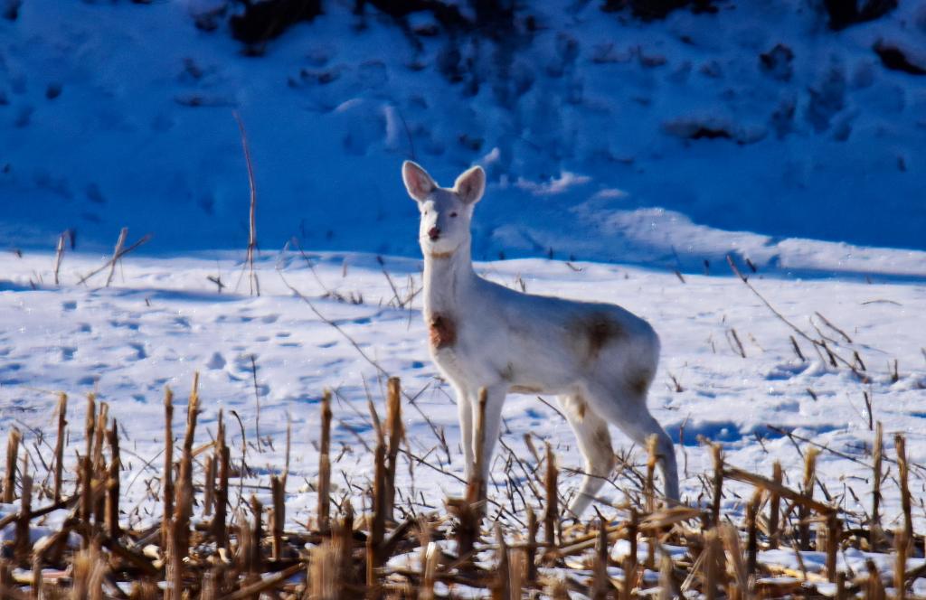 龙年新春佳节到来之际,我国“虎豹出没成常态”的吉林省又发现一只罕见野生动物白狍。记者2月8日从吉林省公安厅森林公安局天桥岭森林公安分局获悉,该局民警7日在巡护途中拍摄到一只罕见白狍,经专家鉴定,这只白狍体色非常罕见,可能对动物体色形成机制有重要的研究价值。