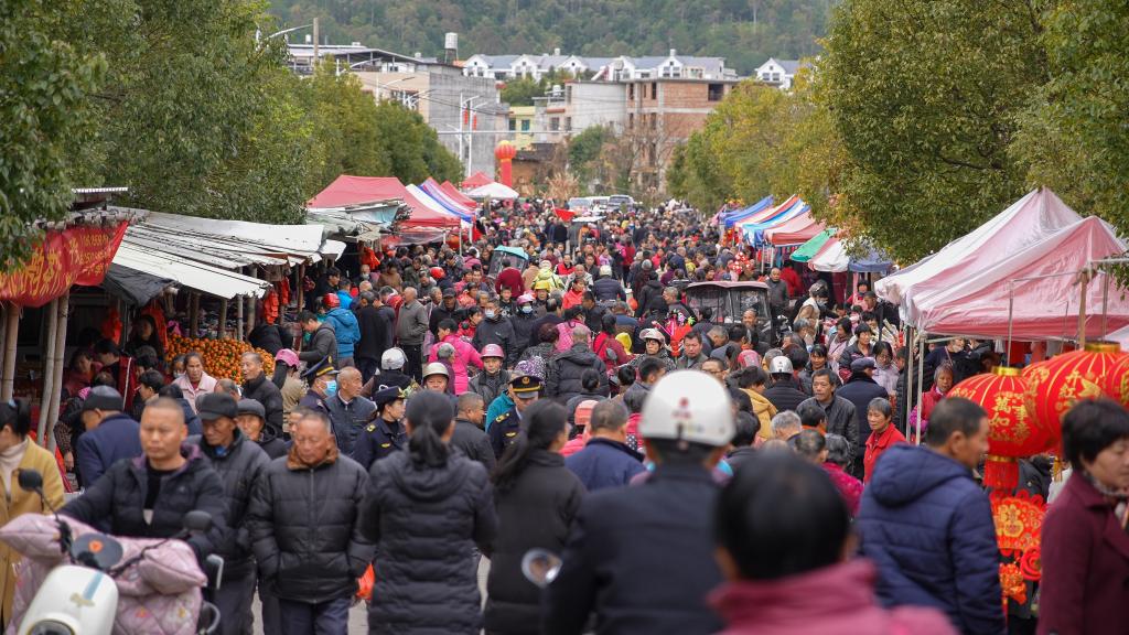 这是2月8日在龙岩市武平县十方镇拍摄的“圩市”。新华社记者周义 摄
