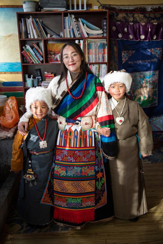 2月10日,斯曲旺姆(中)和家人们欢度藏历新年。