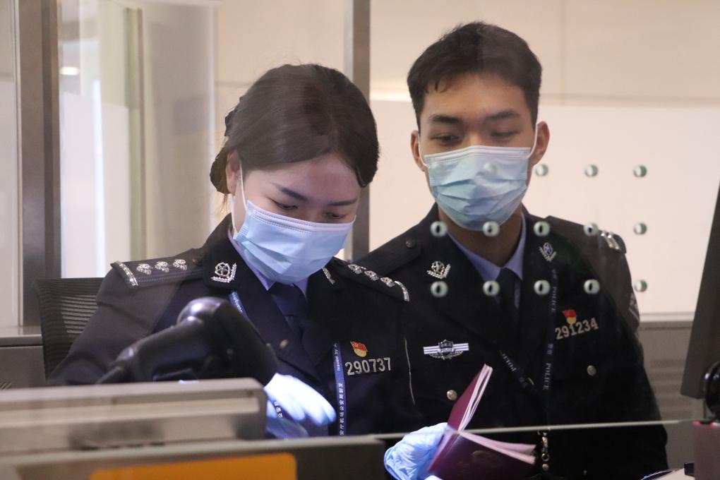 白云边检站的移民管理警察积极服务出入境旅客通关。(白云边检站供图)