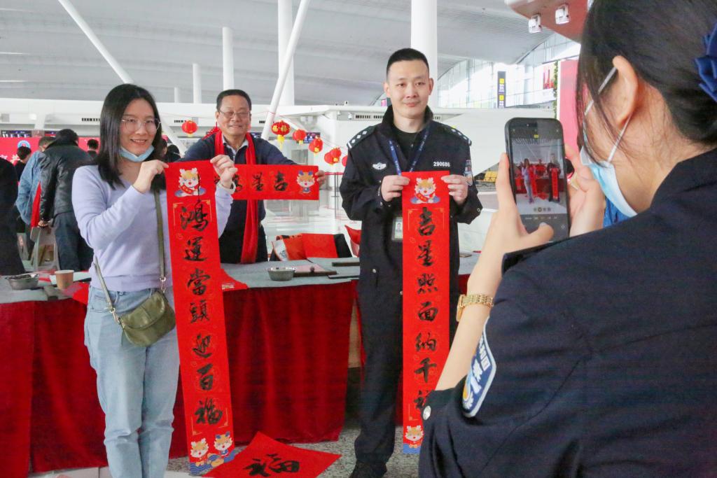 白云边检站在T2航站楼举办迎春送福文化活动。(白云边检站供图)