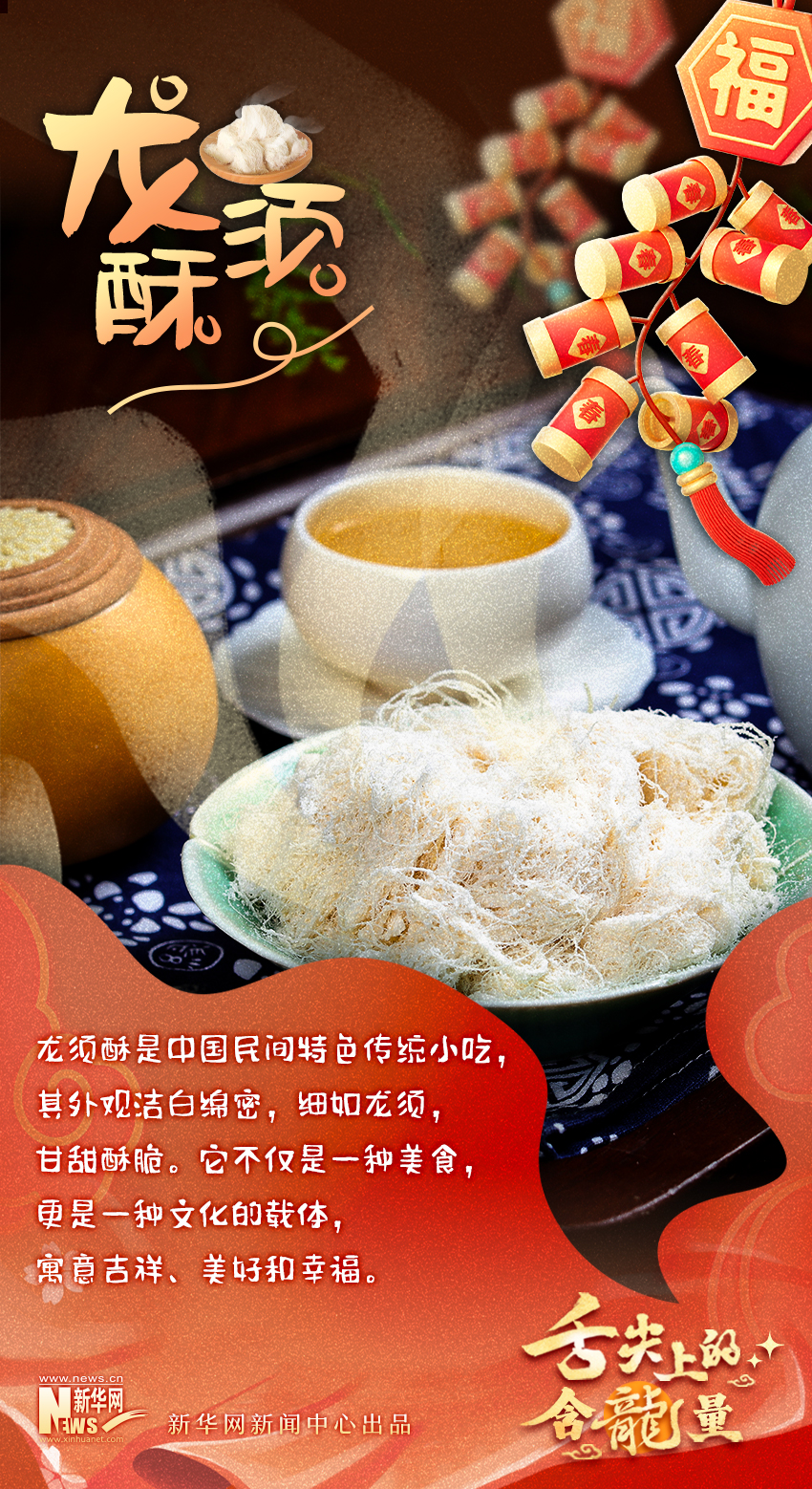 2024年是农历甲辰龙年。“龙”在中华民族心目中有着重要地位,被视为吉祥、权威和神圣的象征。在历史发展长河中,“龙”逐步汇聚起丰富的文化内涵与美好寓意,成为人们精神信仰和文化生活的重要组成部分。春节期间,《寻“龙”记》带您领略博大精深的中华“龙”文化,本期推出一组名字中含“龙”字的美食及饮品,快来看看这个春节你都品尝过哪几个?