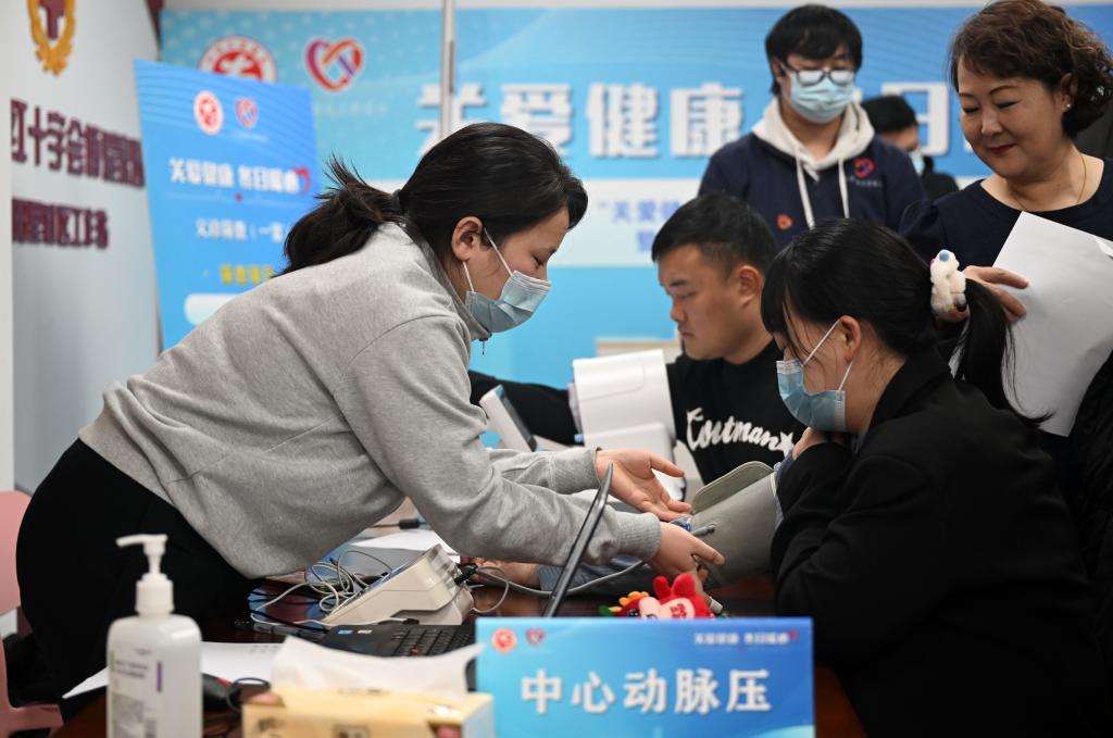 1月17日,在天津市和平区新兴街朝阳里社区,医务人员为社区居民做检查。新华社记者 赵子硕 摄