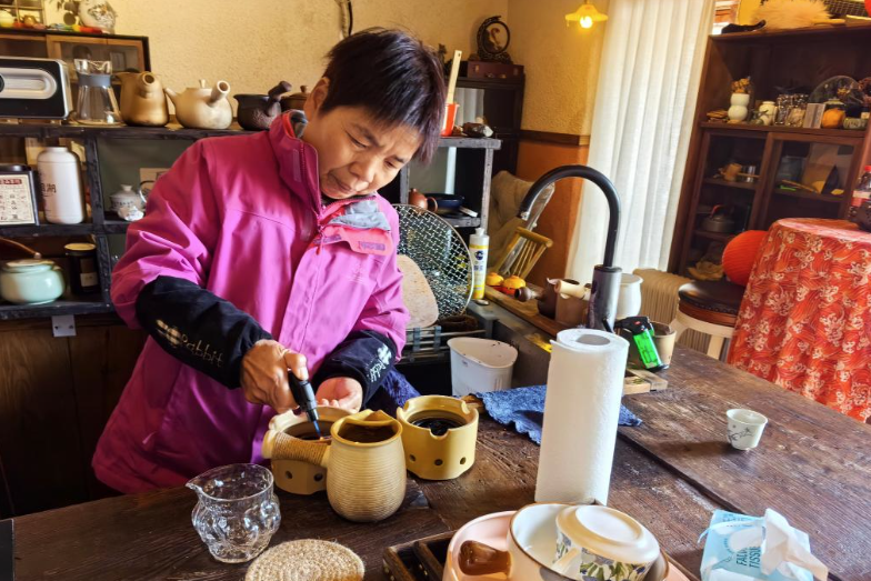 “民宿热”带动乡村业态不断丰富。在大埝村口一间咖啡馆里,60岁的村民丁加兰熟练地升起茶炉、冲着咖啡,大年初一也不休息。不少住在民宿或骑行路过的年轻人会到这里小憩片刻。