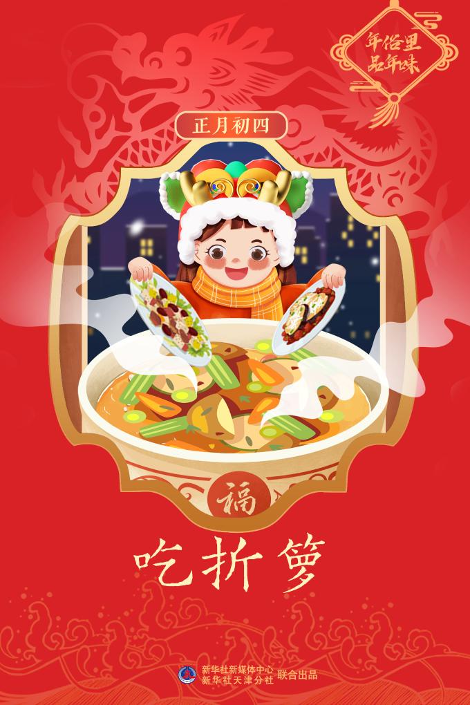 新华社天津2月13日电(记者周润健)按照传统习俗,从大年初一到初三期间的剩饭菜统称为“折箩”,大年初四这天全家人要聚在一起吃折箩。