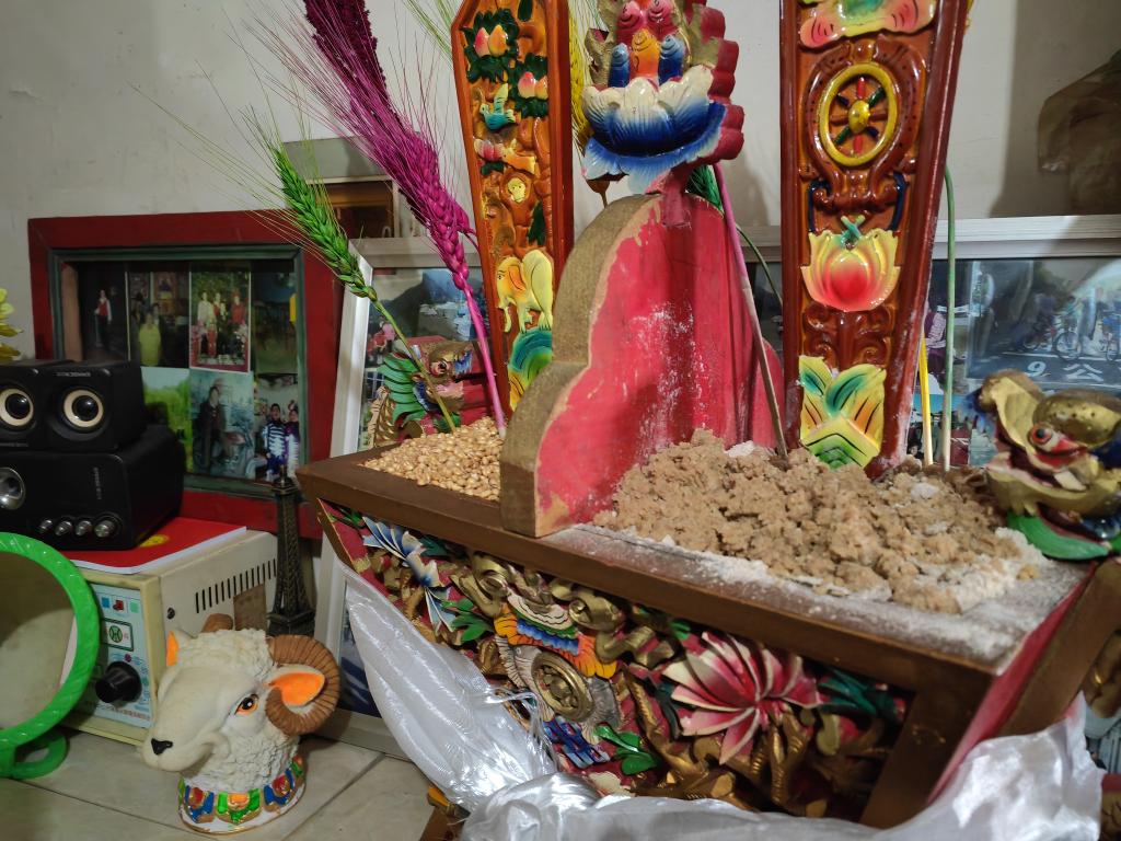 孙建学家中的“切玛”,一边是青稞,一边是糌粑,并插上了花签(2月9日摄)。新华社记者刘洲鹏 摄