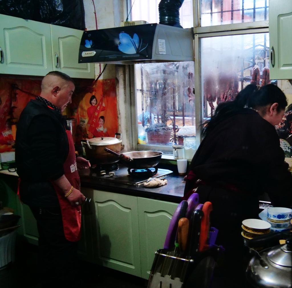 孙建学和妻子索朗巴珍在厨房准备过年餐食(2月9日摄)。新华社记者普布次仁 摄