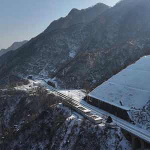 走出洞口,眼前覆满积雪的北洛河特大桥呈现出别样景致。不久前,9200多吨重的铁路连续梁成功转体,使这座“老朋友”更具气魄。我飞起无人机,再度为它留下一张雪景照。