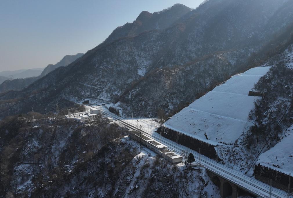 这是1月16日在陕西省延安市洛川县拍摄的建设中的西延高铁伏益隧道进口(无人机照片)。