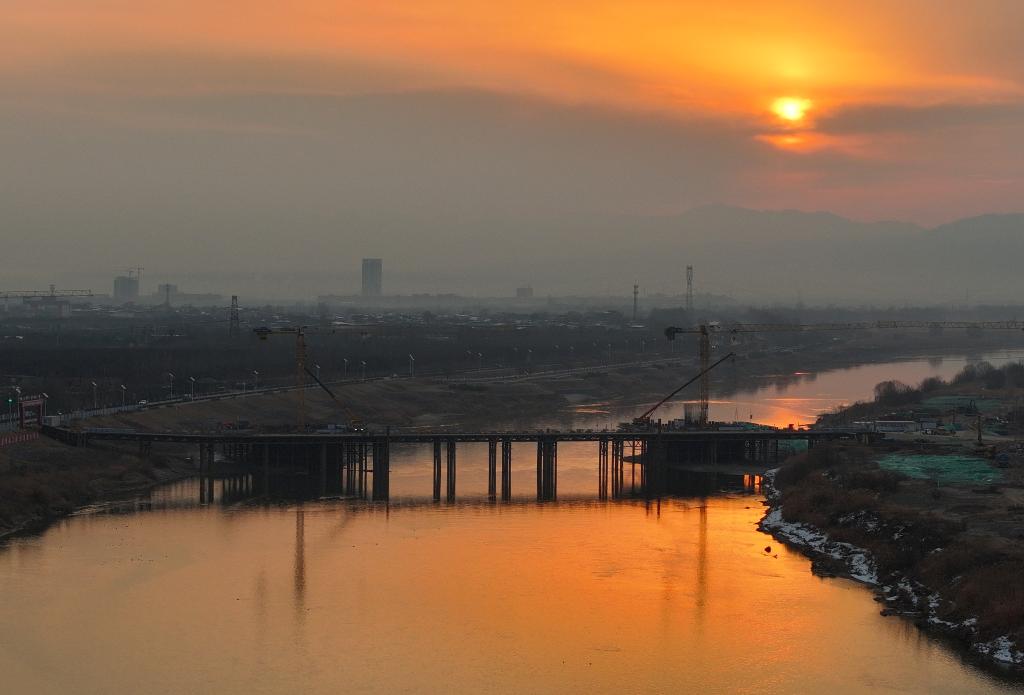 这是1月25日在陕西省西安市拍摄的西延高铁渭河特大桥施工现场(无人机照片)。