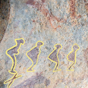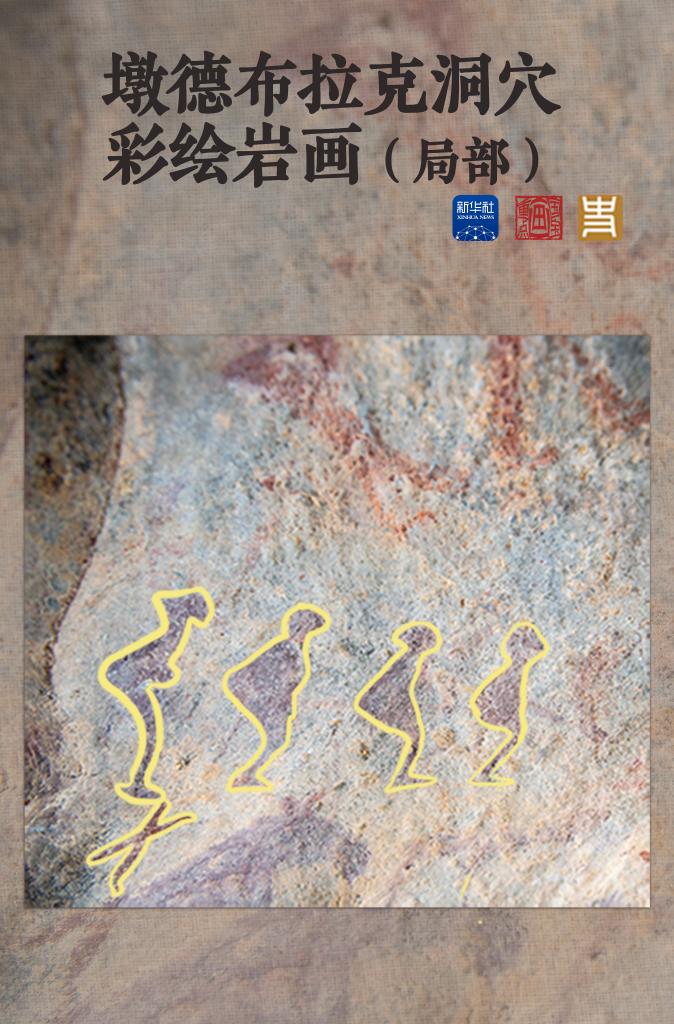 这是位于新疆阿勒泰市汗德尕特乡的墩德布拉克洞穴彩绘岩画。新疆阿勒泰地区文博院馆员卓娅·巴合提介绍,这面岩画直观地呈现了先民使用雪踏(或为滑雪板前身)滑雪狩猎的真实画面。岩画中的人物弯腰屈膝,抬头撅臀,脚蹬短小雪踏,动作与现代滑雪动作基本相同。