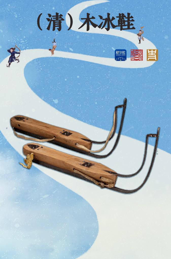 这是藏于故宫博物院的清代木冰鞋,木板下方嵌有铁条,使冰上滑行的选手“步逾疾焉”。“冰嬉”也是多种现代冰上运动的雏形,如速滑、花样滑冰和冰球等。