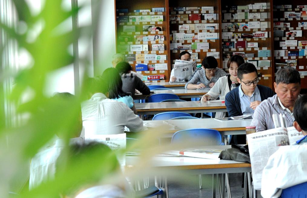 人们在苏州图书馆看书读报。新华社发(杭兴微摄)