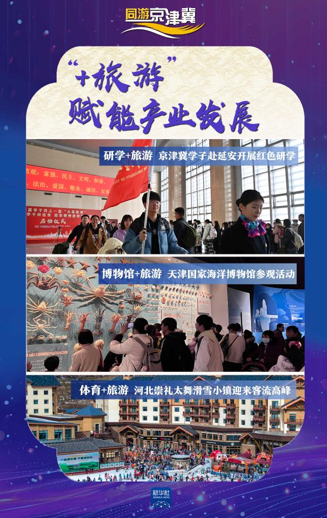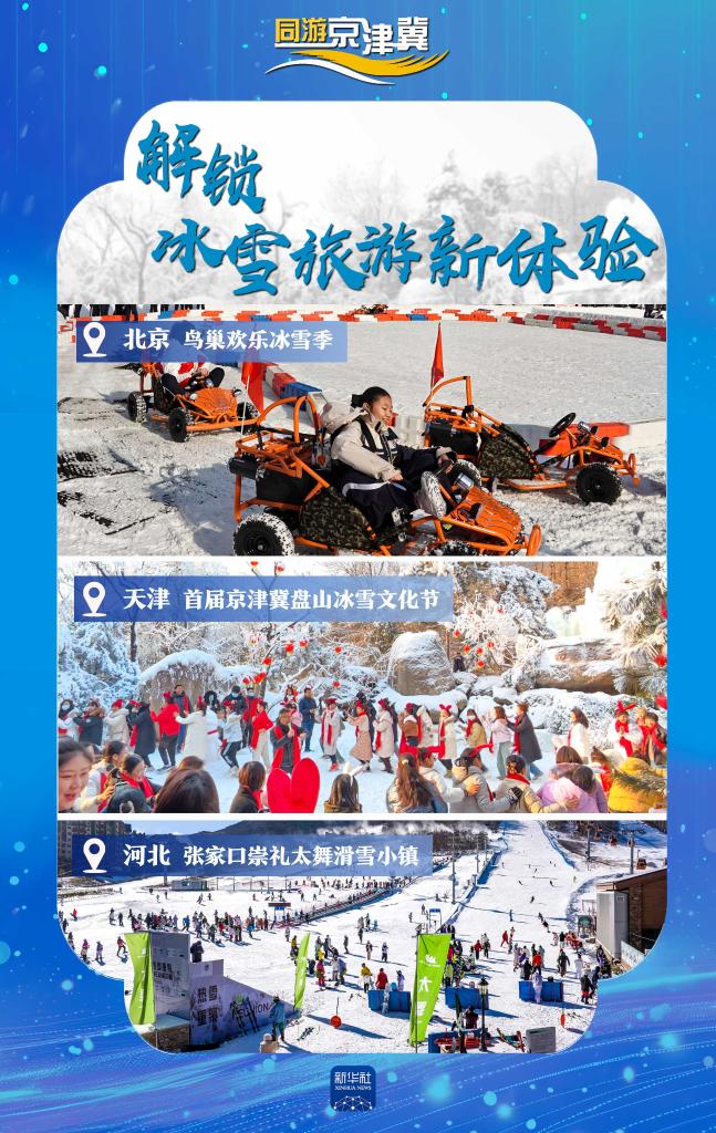 在北京,鸟巢欢乐冰雪季、首钢园潮玩冰雪汇等吸引众多游客玩冰嬉雪,感受“双奥之城”的独特魅力;在天津,首届京津冀盘山冰雪文化节上,来自周边地区的众多游客共同开启一场冬日之旅;在河北,“冰雪温泉过大年”系列活动融合民俗展演、非遗展示等项目,为广大游客奉上冬游“大餐”。