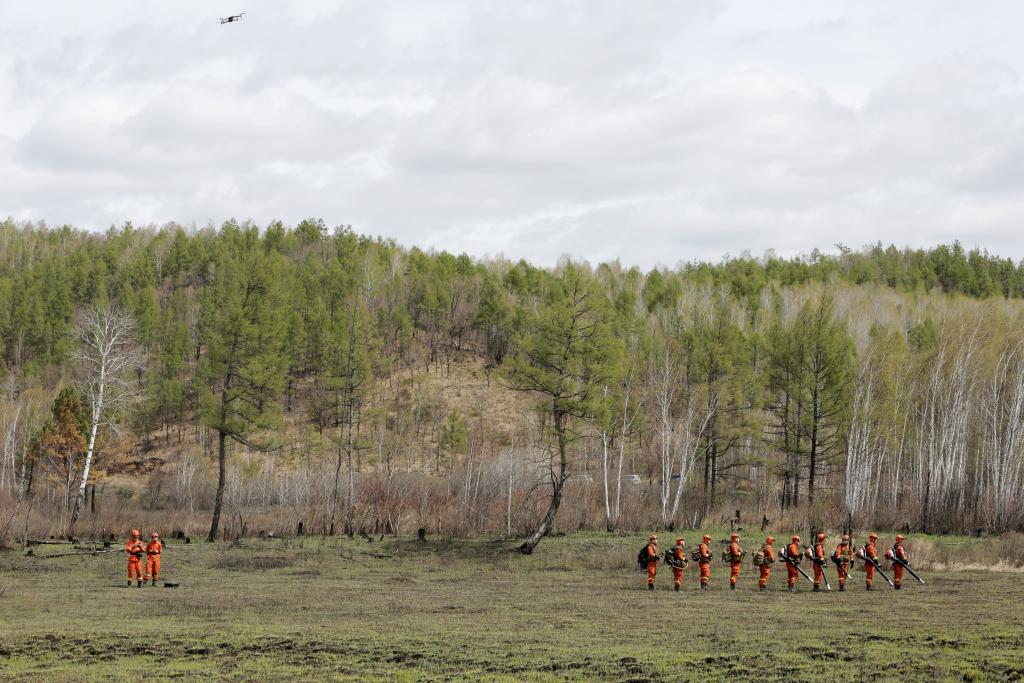 2023年5月17日,在黑龙江呼玛县,大兴安岭地区森林消防支队呼玛县大队十二站驻防点指战员开展以水灭火演练。