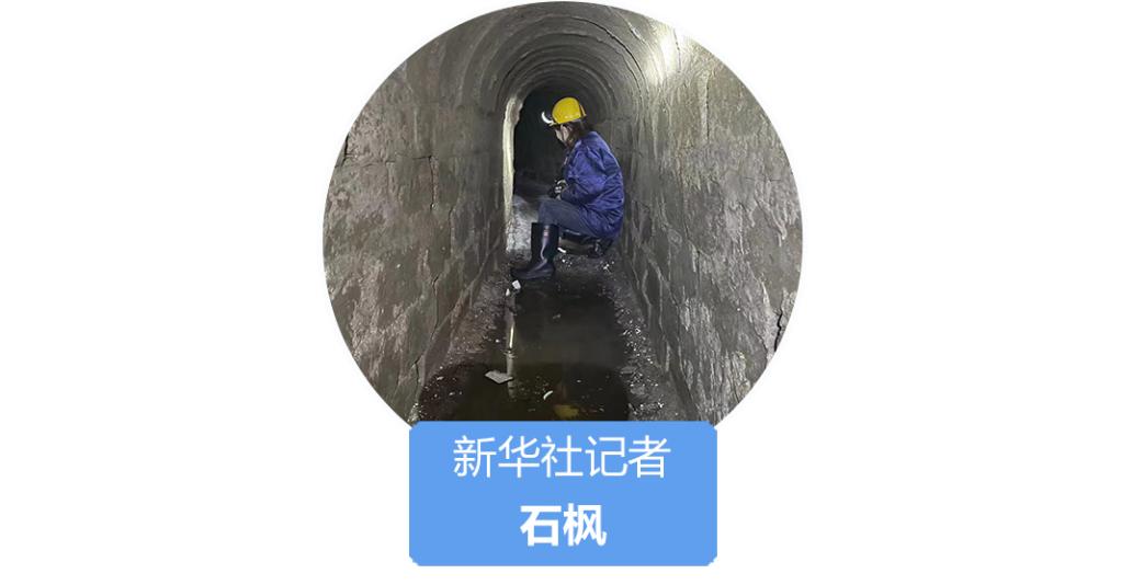 2023年9月13日,在大兴安岭地区白卡尔隧道,中国铁路哈尔滨局集团有限公司的铁路工人在地下8米的深井检查排水系统的畅通情况。