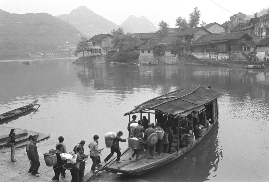 1992年,人们乘“拉拉渡”到茶峒镇(现为边城镇)去赶集。