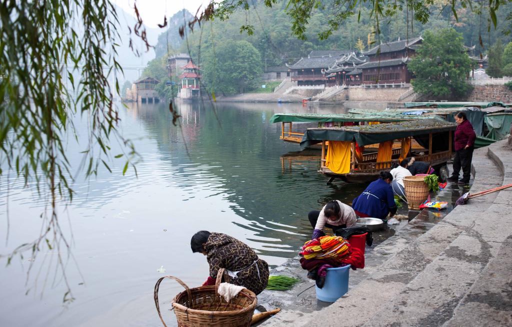 2013年11月14日,边城镇的居民在清水江边洗衣服。