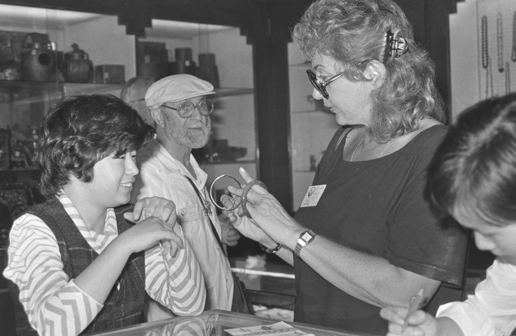 1992年,外国游客在茶峒镇(现为边城镇)的工艺品商店里选购纪念品。