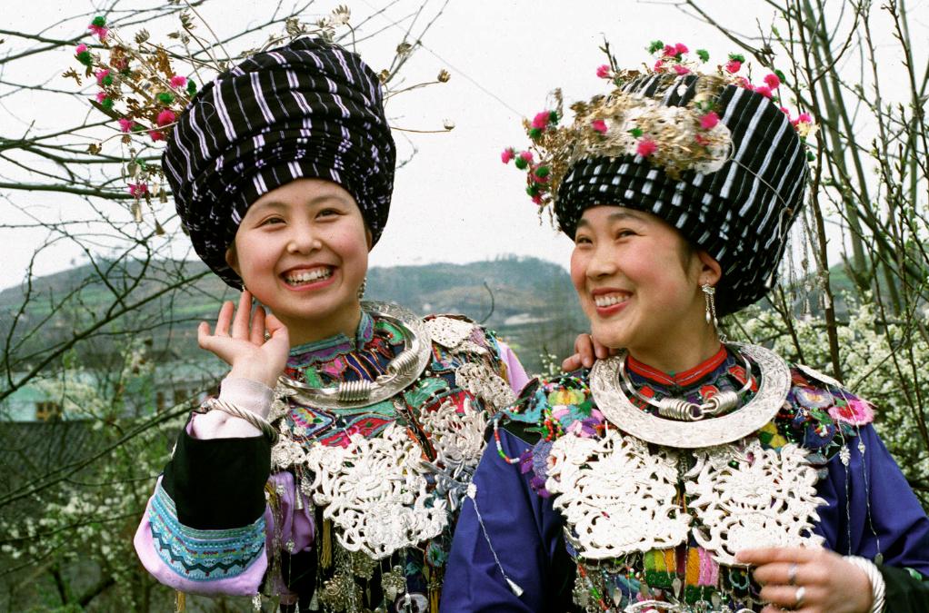 1992年,茶峒镇(现为边城镇)身着盛装的苗家妇女合影。